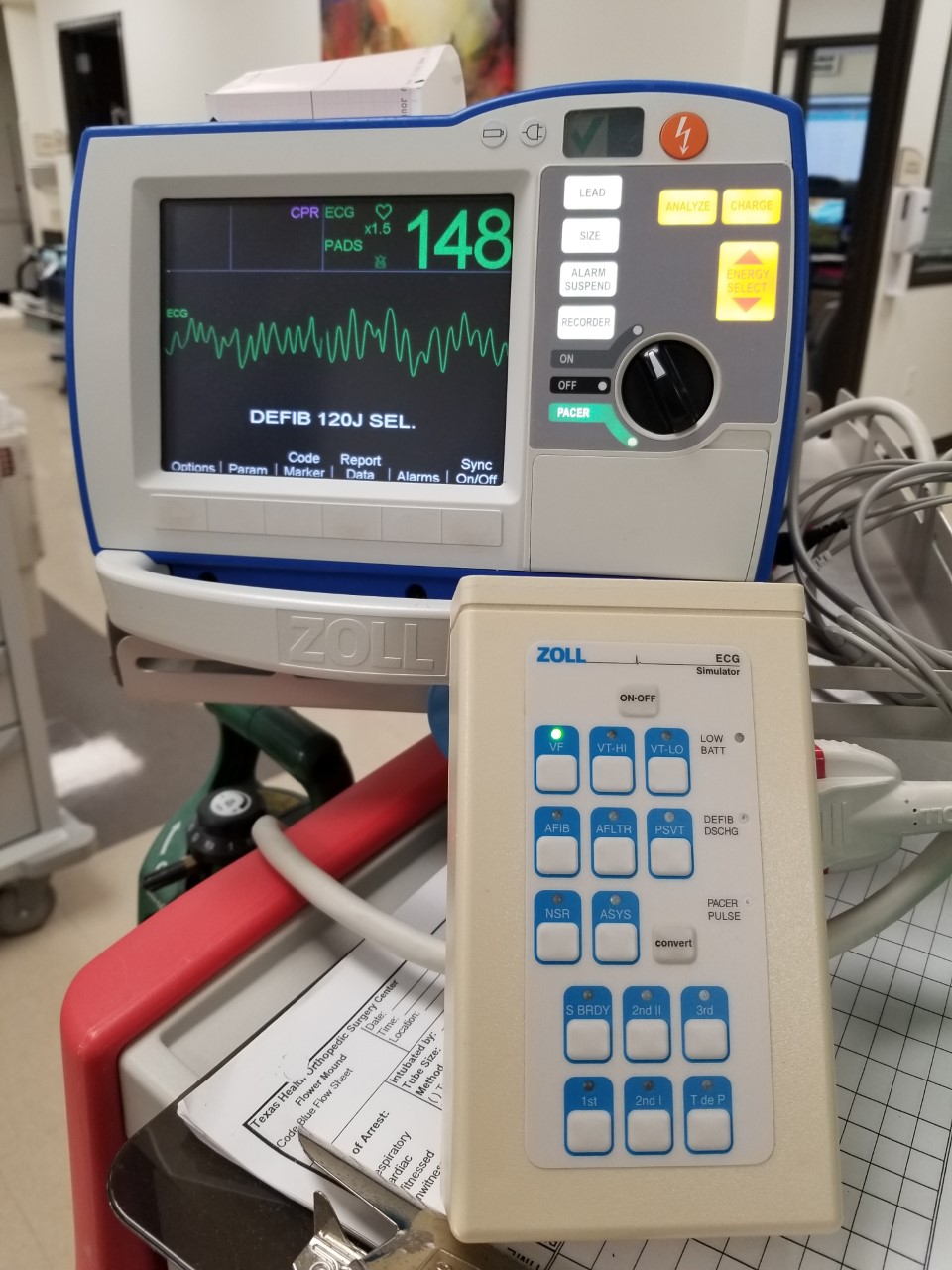 - Review of the facilities defibrillator (AED mode, Manual mode, pacing, and cardioversion).